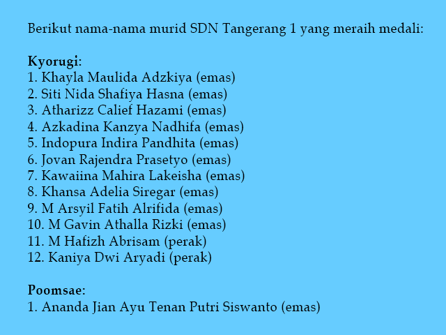 Bagi 13 murid SDN Tangerang 1, podium internasional ini bukan akhir perjalanan. Ia menjadi awal cerita, bahwa mimpi besar bisa tumbuh dari sekolah dasar, dari latihan sederhana, dan dari keberanian untuk mencoba. [ron]