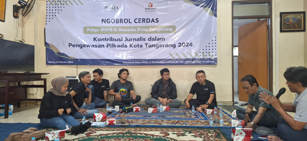 Kegiatan itu dilaksanakan di Sekretariat Pokja WHTR, Jl Perintis Kemerdekaan No 38A, Babakan, Kota Tangerang, Selasa (22/10/2024). Sedikitnya 30 jurnalis mengikuti acara yang juga dihadiri Komisioner Bawaslu Kota Tangerang Faridal Arkam.