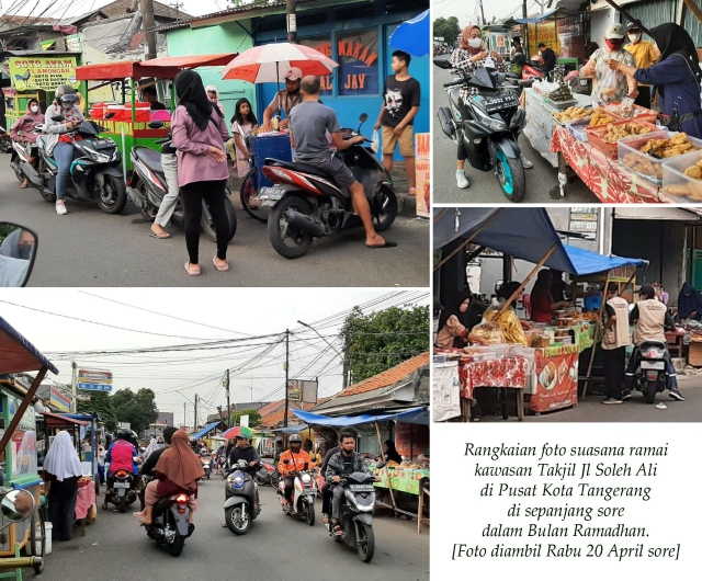 Sudah sejak 5 tahun lalu, kawasan Jl Soleh Ali, mulai tanjakan Pasar Anyar sampai Pertigaan Jl Veteran di Pusat Kota Tangerang, telah berkembang menjadi pusat takjil yang setiap tahunnya semakin ramai saja.