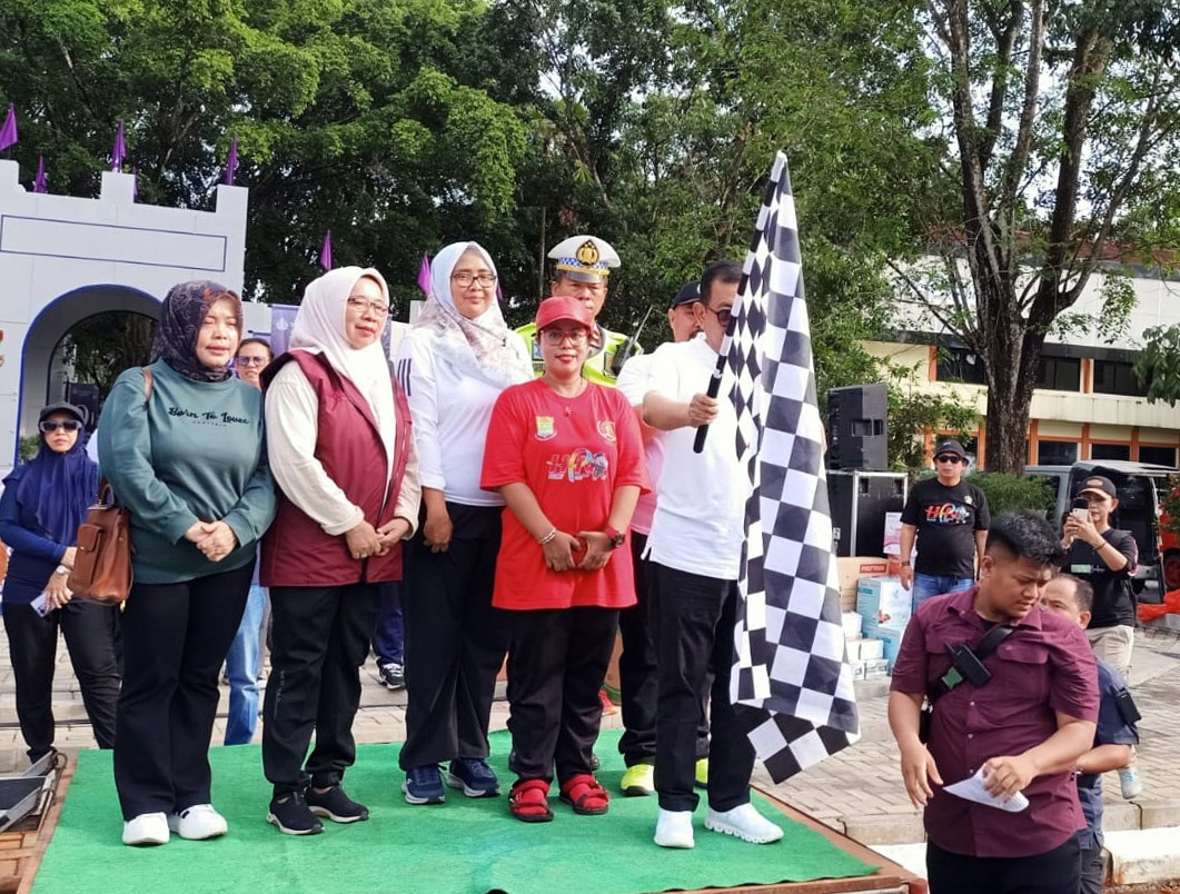 Peserta sejak pagi memadati kawasan pusat Perkantoran Pemkab Tangerang sebagai lokasi kegiatan yang digelar untuk memeriahkan Hari Pers Nasional (HPN) 2026. Peserta lalu dilepas Plh Sekda Kabupaten Tangerang Iwan Firmansyah didampingi Plt Keua PWI Kabupaten Tangerang Selly Loamena dengan mengibarkan bendera start.