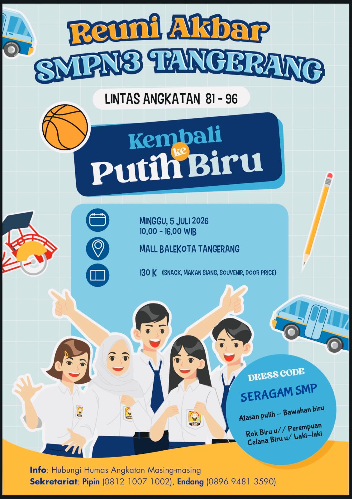 “Siapkan diri untuk nostalgia maksimal. Ini momen langka untuk kembali ke masa putih-biru bersama teman-teman lama,” tambah panitia.