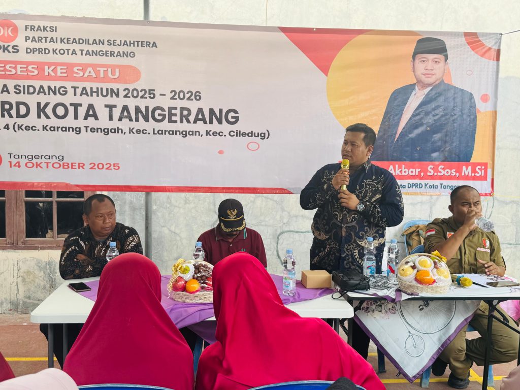 TANGERANG [ProBENTENG] – Anggota DPRD Kota Tangerang, Ridwan Akbar, menggelar Reses Kesatu Masa Sidang Tahun 2025–2026 di daerah pemilihannya yang meliputi Kecamatan Ciledug, Karang Tengah, dan Larangan. Dalam kegiatan tersebut, aspirasi masyarakat masih didominasi oleh persoalan infrastruktur lingkungan.