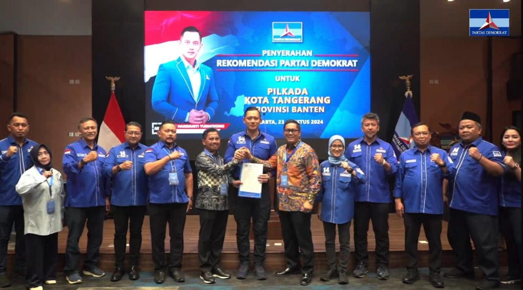 Penyerahan surat tersebut dilakukan langsung oleh Ketua DPP Partai Demokrat Agus Harimurti Yudhoyono kepada pasangan itu di Kantor DPP Partai Demokrat di Jalan Proklamasi No 41, RW 002, Pegangsaan, Kecamatan Menteng, Kota Jakarta Pusat, Jumat (23/8/2024).