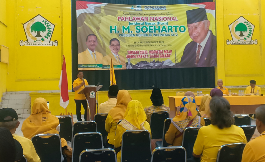 TANGERANG [ProBENTENG] – DPD Partai Golkar Kota Tangerang menggelar syukuran atas penganugerahan gelar Pahlawan Nasional kepada Jenderal Besar (Purn) HM Soeharto, Presiden RI ke-2 sekaligus tokoh penting Partai Golkar. Acara berlangsung di Gedung DPD Golkar Kota Tangerang, Jalan Syekh Yusuf, Babakan, Selasa (11/11/2025).